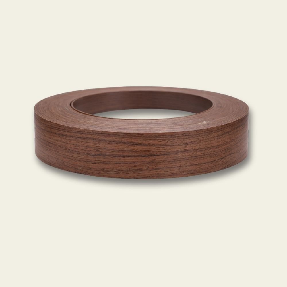 Dải nẹp vân gỗ màu nâu đậm với vân gỗ tự nhiên, sắc nét, bề mặt mịn và đều màu. Phù hợp hoàn thiện cạnh nội thất, mang lại cảm giác sang trọng và ấm áp.