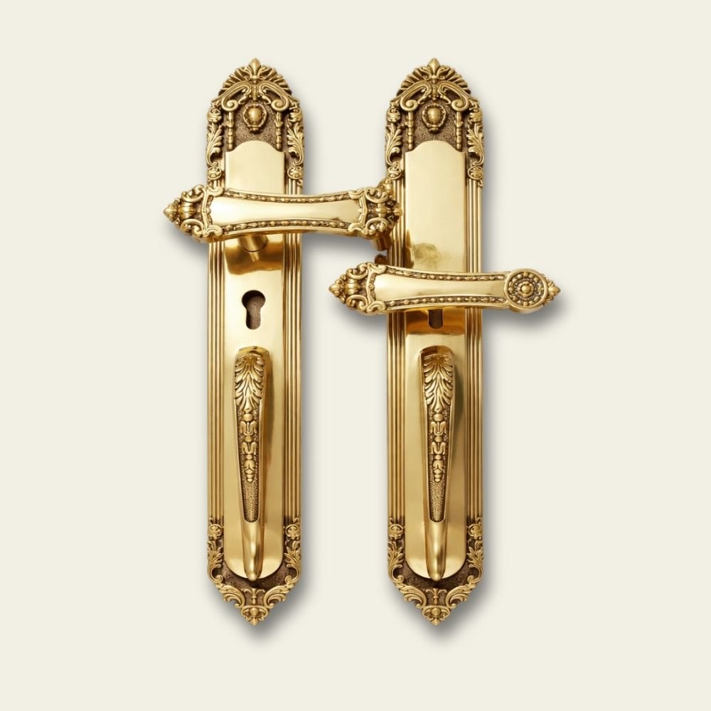 Tay nắm cửa cổ điển mạ vàng là dòng phụ kiện cao cấp, nổi bật với thiết kế đối xứng và các họa tiết hoa văn tinh xảo mang đậm phong cách châu Âu cổ điển. Bề mặt được xử lý mạ vàng sáng bóng, tạo cảm giác sang trọng và bền màu theo thời gian.